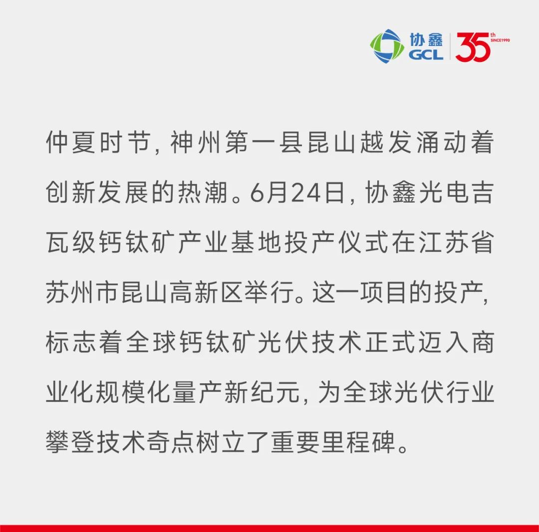从行业视角看,钙钛矿电池作为第三代新型太阳能电池,具备光电转换效率高、制备工艺短、能耗与成本双低等显著优势。协鑫光电这一规模化产业基地的落地,不仅为全球钙钛矿光伏产业提供了商业化示范样本,更将推动全球新能源产业向高效、低碳、可持续方向加速迈进。